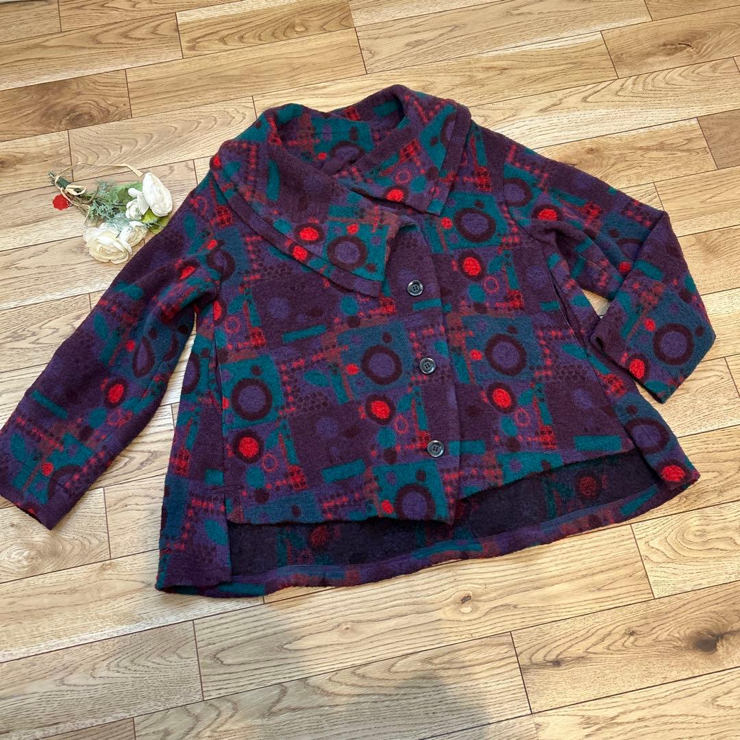 慈雨 センソユニコ ドット 柄 アシンメトリー 変形 ウール コート 40